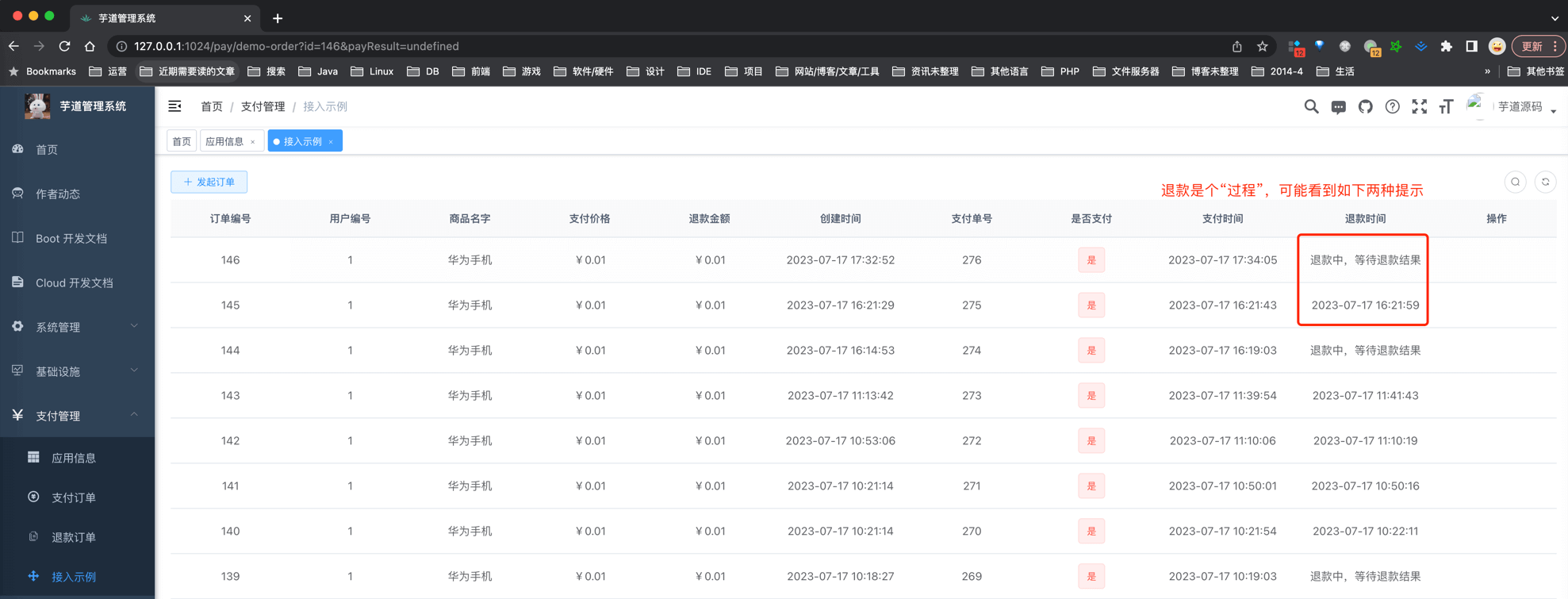 至此,我们已经完成了退款接入的所有步骤,接下来,我们来测试一下退款功能。