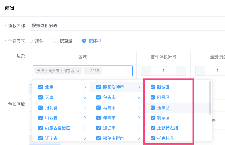 ② area_ids 字段:配送区域 id 数组,存储的区级别。如下图所示: