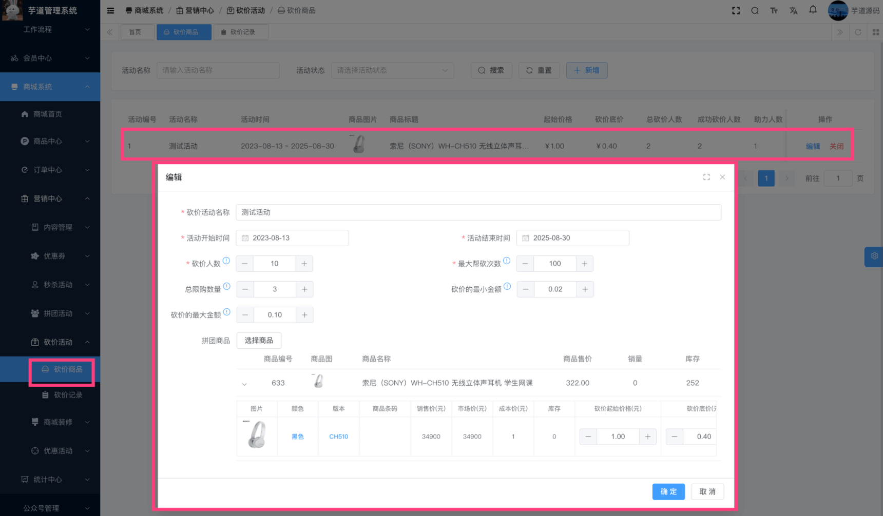 ③ stock、total_stock 字段:砍价库存,自定义参与砍价的数量。