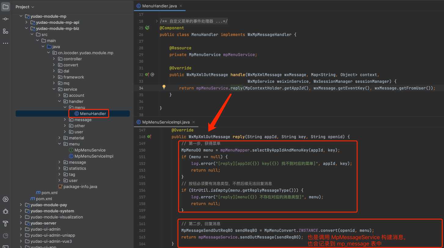 图片纠错:最新版本不区分 yudao-module-mp-api 和 yudao-module-mp-biz 子模块,代码直接合并到 yudao-module-mp 模块的 src 目录下,更适合单体项目
