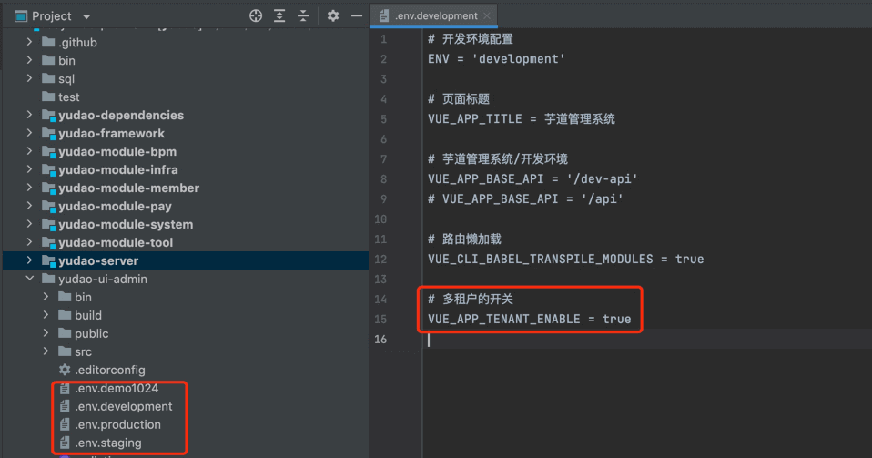 VUE_APP_TENANT_ENABLE | 前端开关 | ![]() |
