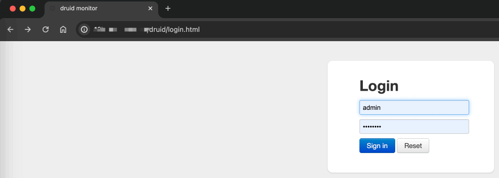 只需要在 spring.datasource.druid.stat-view-servlet 配置项中,设置 login-username 和 login-password 即可。开启后,登录界面如下图所示: